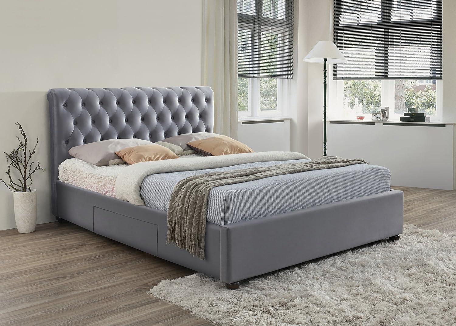 Birlea Velvet Marlow Bed Fabric Grey Super King Amazon Co Uk Kitchen Home